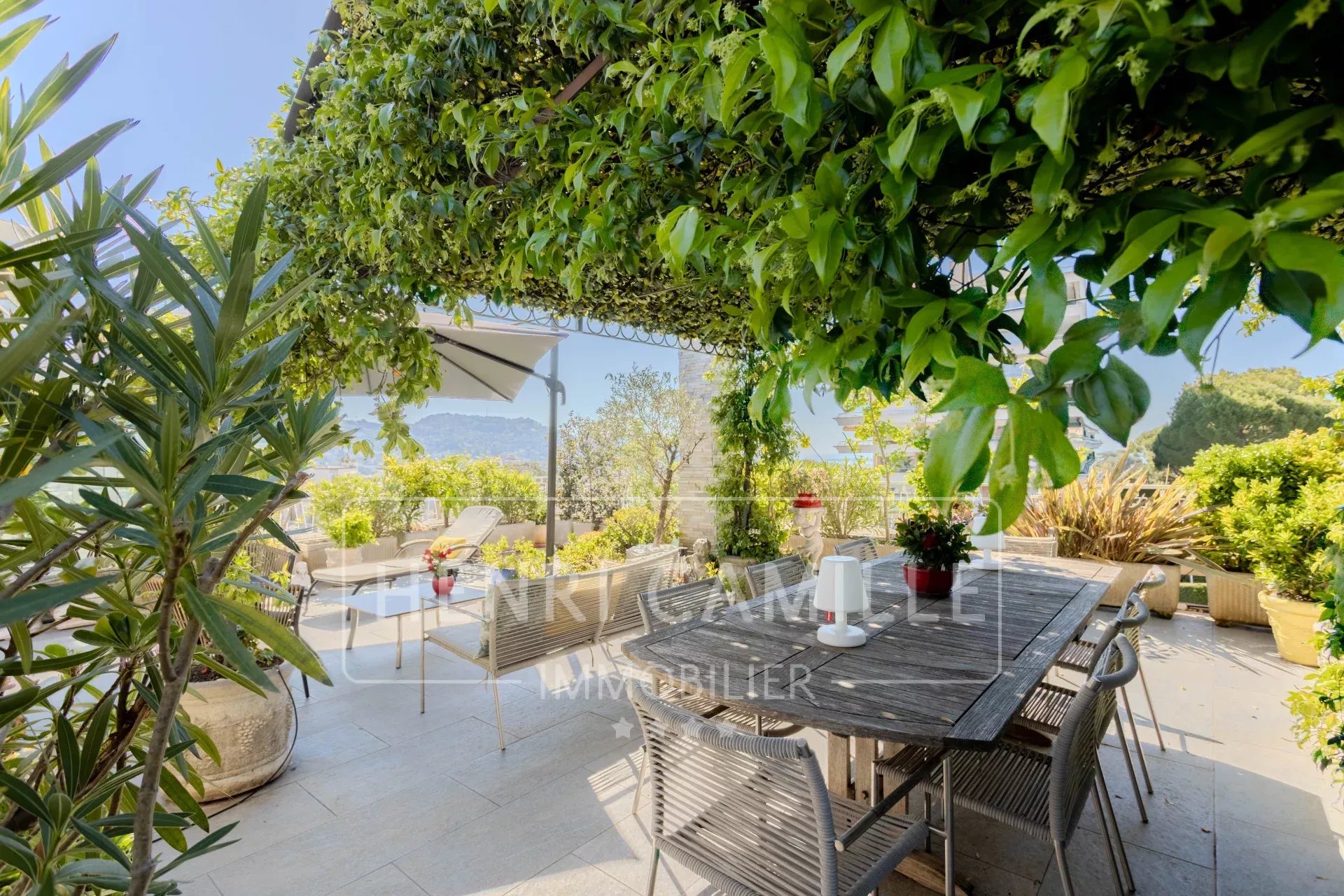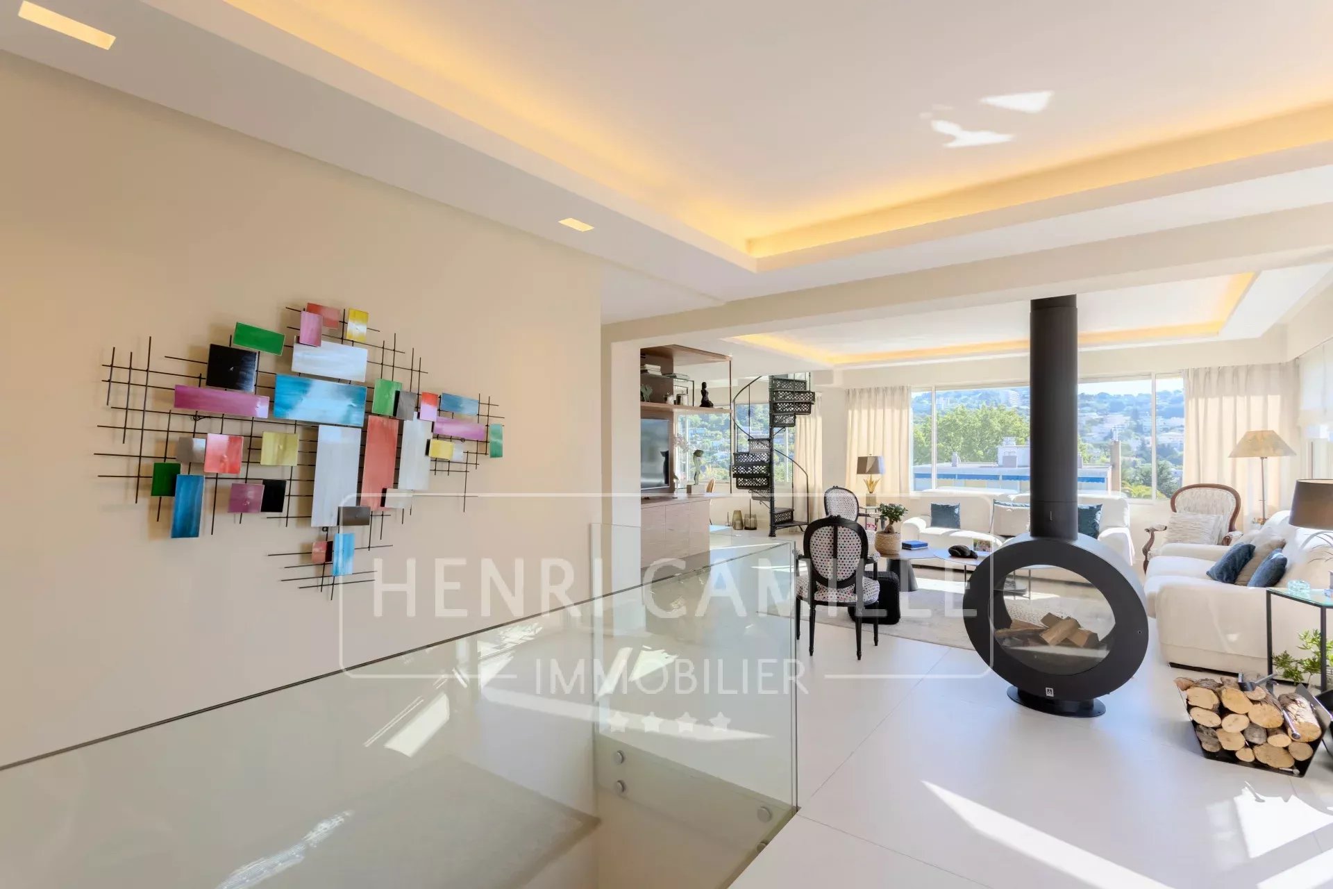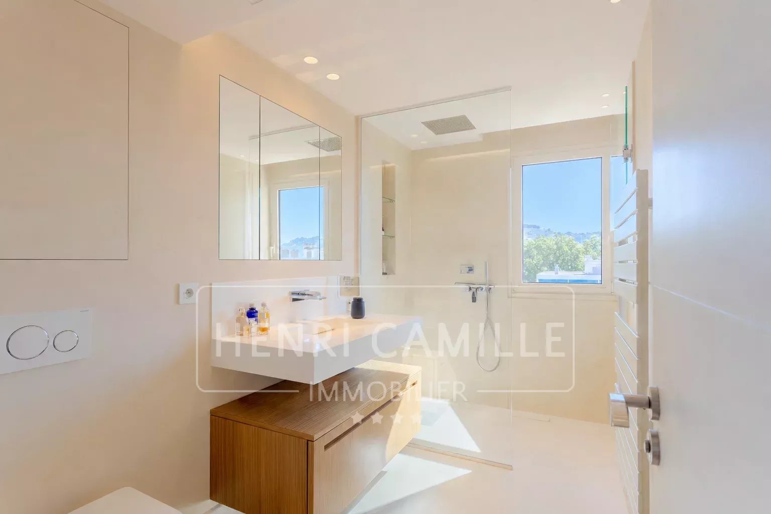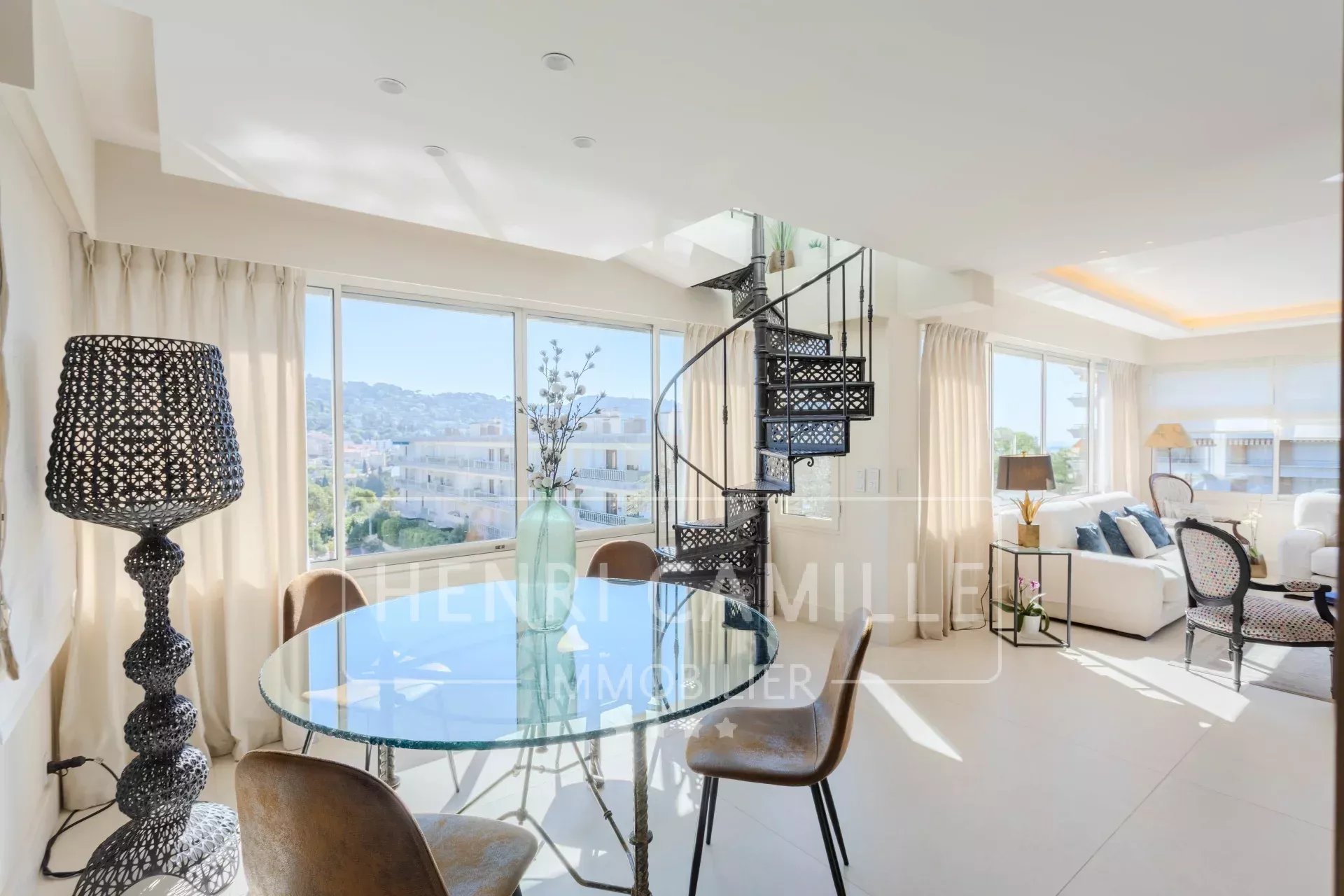 Le Cannet Residential area, on the top floor of a small, secure residence with a swimming pool, this stunning 5-room apartment offers generous volumes (128 sqm Carrez law).