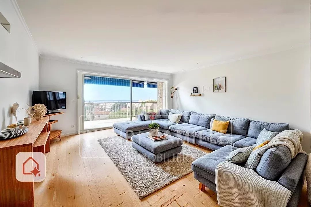 Dans petite résidence de standing, à quelques minutes du centre de Cannes, appartement confortable de 103m² pour 3 belles pièces ouvrant sur terrasse profonde de 18m, au calme et ensoleillé.