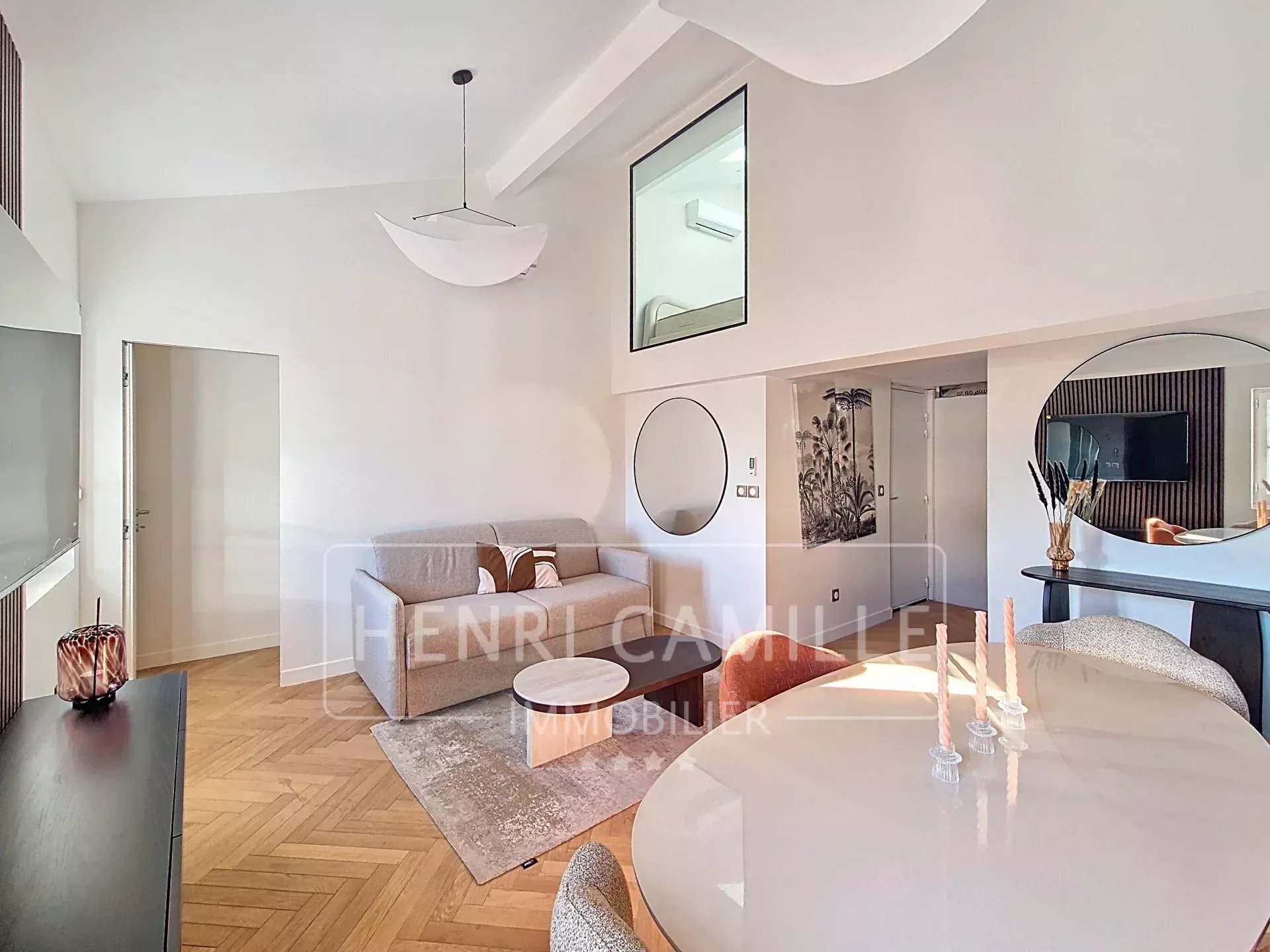 Dans un immeuble bourgeois situé à 1 mn à pied de la Rue d'Antibes et 5 mn de la Croisette, 2 pièces en duplex entièrement rénové avec des matériaux de qualité. Très belle hauteur sous plafond. Bonne rentabilité locative et faibles charges de copropriété. Parking public au pied de l'immeuble proposant des abonnements. Possibilité d'acquérir plusieurs appartements dans le même immeuble.